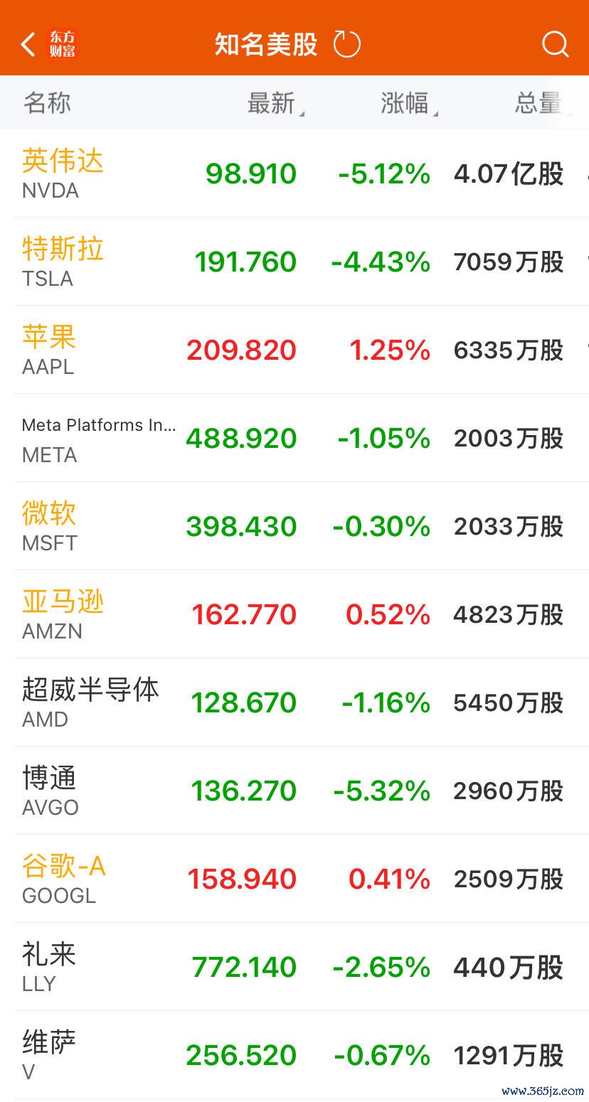 芯片股集体走弱,博通跌5.32%,英特尔跌3.63%,微芯科技跌3.58%,高通跌1.64%,超威半导体跌1.16%。英伟达跌5.08%,股价跌破100美元关口,市值蒸发1303.8亿美元(约合人民币9357亿元)。