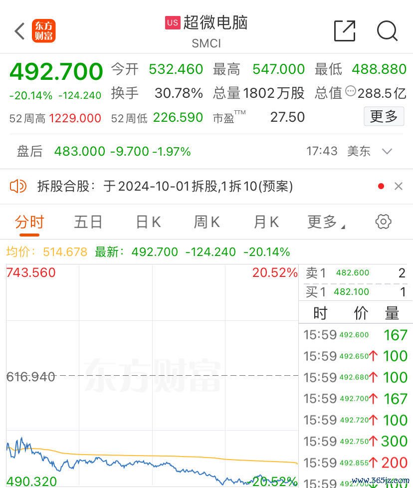 美东时间周三,人工智能巨头超微电脑因业绩不如预期,股价收跌20.14%,总市值288.5亿美元。