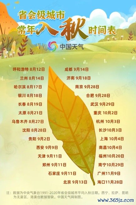 入秋进程图出炉!你家入秋了吗?