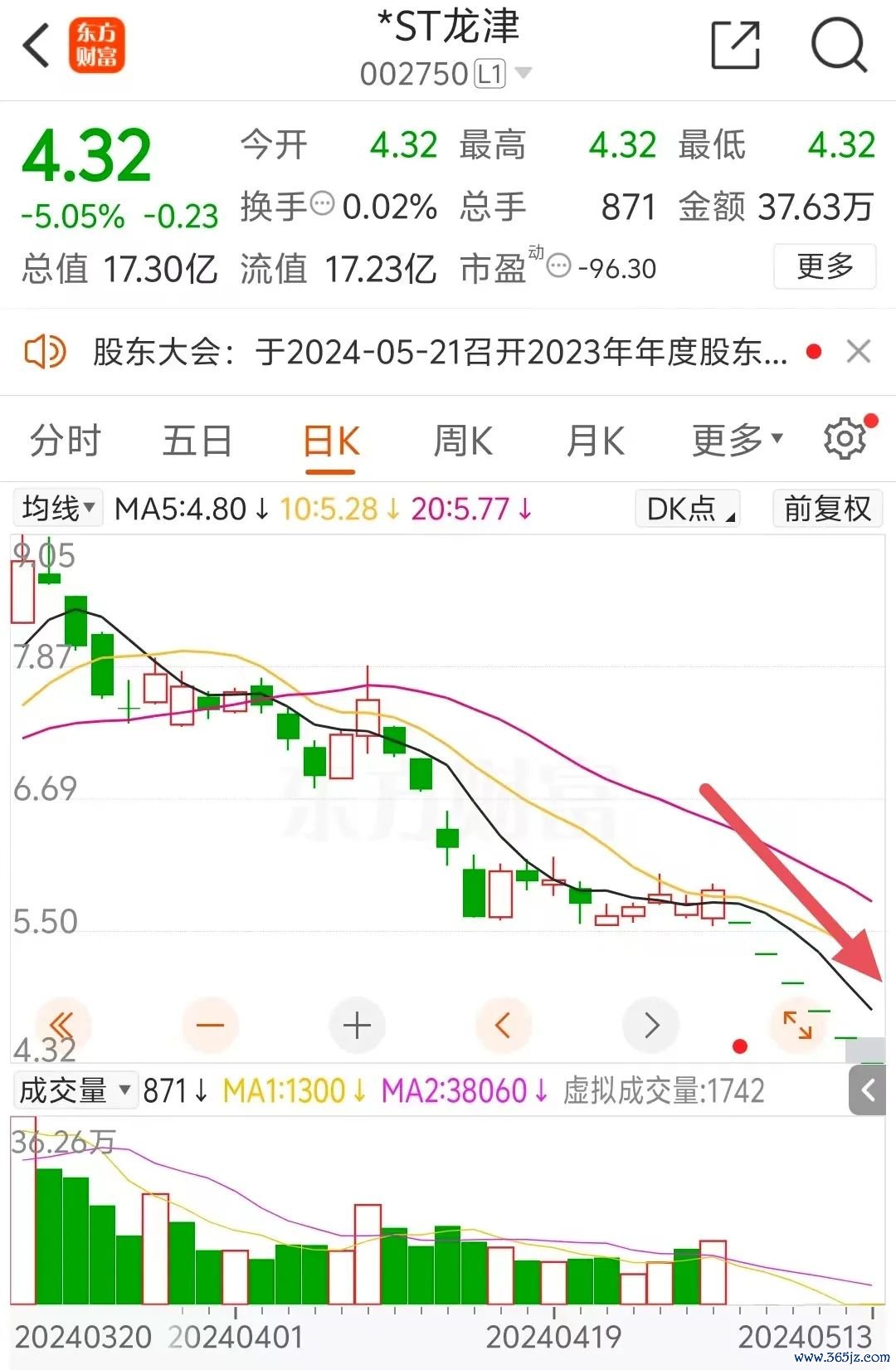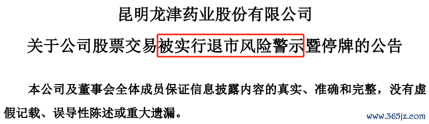 需要注意的是,龙津药业年报发布后,财务指标触及前述规则第9.3.1条第一款第(一)项的规定“最近一个会计年度经审计的净利润为负值且营业收入低于1亿元,或者追溯重述后最近一个会计年度净利润为负值且营业收入低于1亿元”的情形,公司股票已经被实施退市风险警示,即*ST。