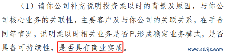 深交所要求公司补充说明投资柔以时的背景及原因,与公司核心业务的关联性,主要客户及与公司的关联关系,在手合同等情况,说明柔以时相关业务是否已形成稳定业务模式,是否具备可持续性,是否具有商业实质。