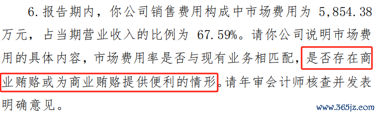 深交所要求公司说明市场费用的具体内容,市场费用率是否与现有业务相匹配,是否存在商业贿赂或为商业贿赂提供便利的情形。监管还要求年审会计师核查并发表明确意见。