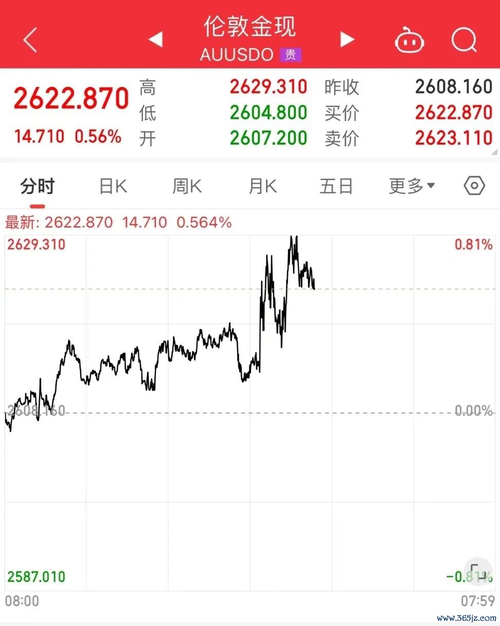 现货黄金价格短线跳涨炒股配资平台注册,一度触及2629.31美元/盎司,截至发稿回落至2622.87美元/盎司附近。