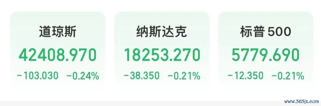 数据公布后,美股三大指数集体低开,截至发稿,道指跌103.03点,跌幅为0.24%,报42408.97点;标普500指数跌12.35点,跌幅为0.21%,报5779.69点;纳指跌38.35点,跌幅为0.21%,报18253.27点。